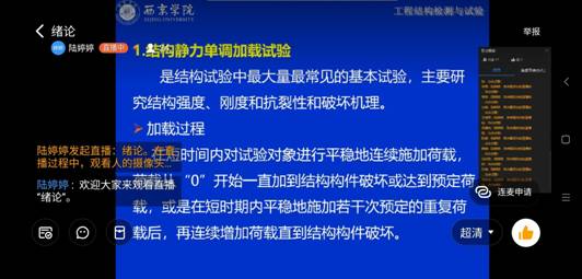 陆婷婷副教授在进行《工程结构检测与试验》线上授课