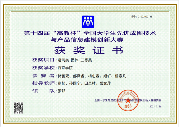 图2 “建筑类团体三等奖”奖证书