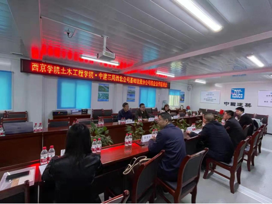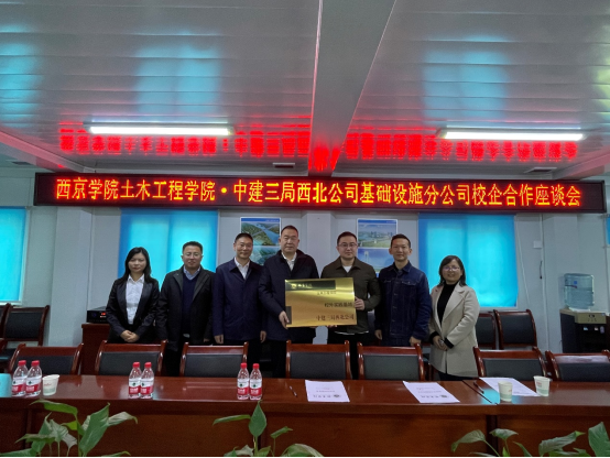 10月15日,3344222全新讯网官方网谢明副院长一行3人赴中建三局西北公司基础设施分公司,签订校企合作协议,并挂牌。中建三局西北公司基础设施分公司常务副总经理何宝平、工会主席纪委书记蔡建华、人力资源部经理余茜、地铁八号线项目经理叱干向明、执行经理李强出席签约仪式。仪式由余茜主持。