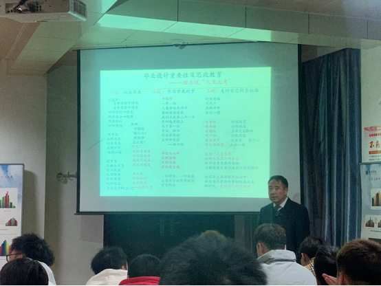 马斌教授在动员会上,向学生指出了毕业设计与毕业论文的重要性,要求大家要按照时间要求、保质保量的地完成毕业设计。并对本届毕业设计的相关规定做了详细解读,介绍了工程管理专业毕业设计具体要求。