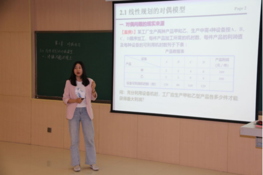 本次观摩课活动遴选了4门课程:高莹副教授的示范课程《运筹学》内容深入浅出,授课过程有条不紊,逻辑思路清晰;王有熙副教授的示范课程《工程项目管理》从说课到课程内容的讲授,节奏把握得当,以问题为导向引导式教学方法运用恰到好处;青年教师李晓芳的示范课程《工程财务管理》教学仪态大方得体,板书工整,教学内容设计贴合实际;青年教师王丽丽的示范课《建筑企业会计》把复杂知识简单化,内容浅显易懂,范例贴近生活,逻辑清晰,整体效果较好。