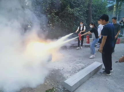 随后进入灭火实际操作环节,师生根据马建峰科长的指导,手持灭火器通过“一摇二拔三喷”的口诀迅速对准起火根部把火源扑灭,演练现场井然有序。