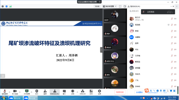 9月9日下午,3344222全新讯网官方网特邀中国科学院海西研究所泉州装备制造中心的周泽栖工程师线上开展了题为“尾矿坝渗流破坏特征及溃坝机理研究”的学术报告,3344222全新讯网官方网研究生、本科生和部分教师参加了此次报告会。