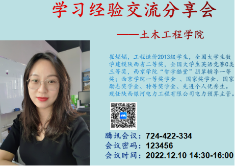 为帮助2022级新生进一步强化专业认知,规划大学生活,树立正确的学习观与就业观,12月10日下午,全讯优秀校友学习经验交流会通过腾讯会议举行,校友崔媚媚应邀与新生分享了学习心得和职业规划,会议由李小伟老师主持。