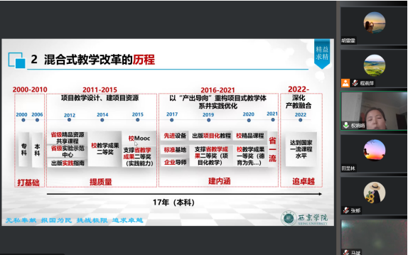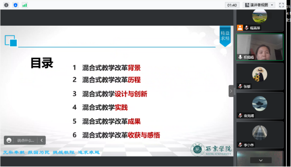 12月16日下午,3344222全新讯网官方网教育教学论坛在线上举行,本次活动由3344222全新讯网官方网教务科科长程燕萍主持,3344222全新讯网官方网“教学名师”权娟娟副教授做了题为《“混合式教学”创新设计与实践》的报告,全体教师线上参加。