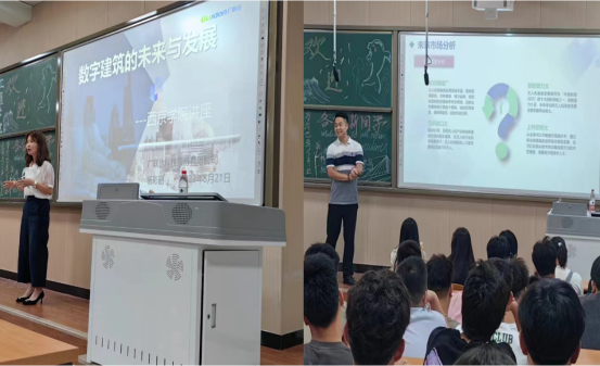 在广联达科技股份有限公司,陕西区域经理杨彩丽接待全讯到访师生,并安排专员做“数字建筑”知识讲解。数字建筑,是虚实映射的“数字孪生”,是驱动建筑产业的全过程、全要素、全参与方的升级的行业战略,是为产业链上下游各方赋能的建筑产业互联网平台,也是实现建筑产业多方共赢、协同发展的生态系统。工程造价和智能建造专业新生通过参观学习,初步了解数字建筑推动行业转型升级等方面知识,对自己所选择的专业发展方向和就业前景有了进一步的认知。