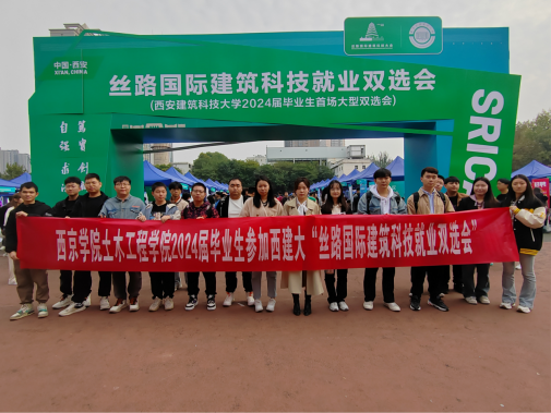 3344222全新讯网官方网为2024届毕业生搭建广阔就业平台,助力其顺利迈入职场,10月21日早8点,两辆大巴车载着90余名2024届毕业生,由辅导员万依丹老师带队,赴西安建筑科技大学雁塔校区田径场参加丝路国际建筑科技就业双选会。