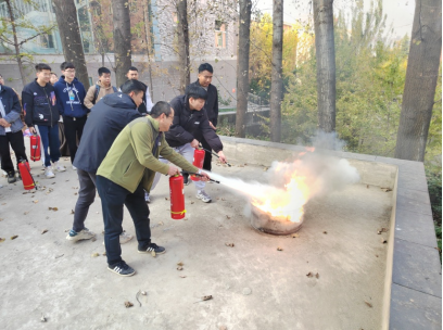 第二部分是实战演练。为了模拟真实火灾现场,实验室事先布置了烟雾弹,随着警报声的响起,学生们迅速按照逃生方法弯腰捂鼻、迅速撤离。整个过程紧张有序,学生们反应迅速,表现出良好的自救能力。随后部分师生也亲自体验灭火过程,按照灭火步骤和方法迅速使用灭火器将火扑灭。