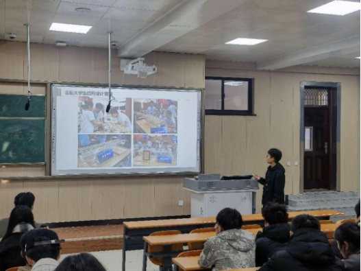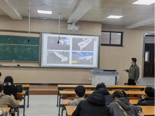 随后由获奖学生代表进行经验交流分享汇报。受邀的5位获奖学生分别为:全国大学生先进成图技术与产品信息建模创新大赛获国赛二等奖的许士博、全国大学生结构设计竞赛获省赛二等奖的刘江洋、全国大学生测绘学科创新创业智能大赛获国赛二等奖的何俊杰、第九届全国高校BIM毕业设计创新大赛获国赛三等奖的周博闻、中国“互联网+”大学生创新创业大赛获校赛铜奖的庞扬扬。他们满怀激情介绍了获奖大赛的规则、赛事具体内容及训练培训情况、赛事评审方式、比赛现场实况等,并且从自身角度谈了切身体验和感受,使大家深刻体会到每一份成功的背后都蕴含着辛苦的汗水!