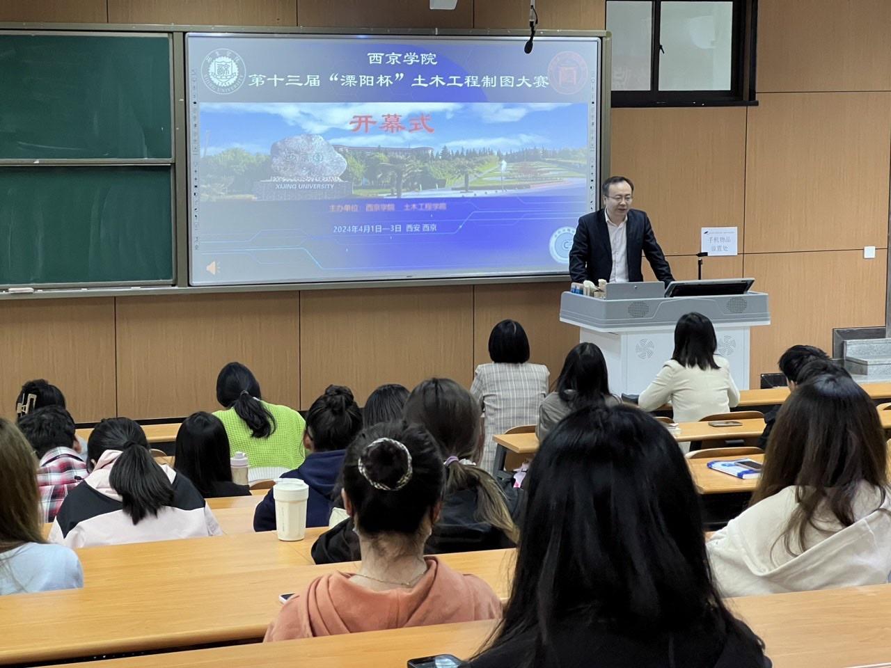4月1日下午,大赛开幕式在2号教学楼208教室举行。3344222全新讯网官方网副院长张海龙、教务科科长程燕萍、3344222全新讯网官方网大学生创新性训练中心主任岳文萍等出席了开幕式,大赛负责人及指导教师张郁主持。张海龙在致辞中强调了制图技能在土木工程领域的重要性,并鼓励选手们以饱满的热情投入到比赛中。