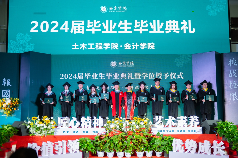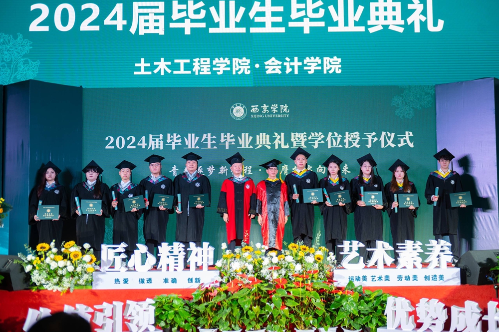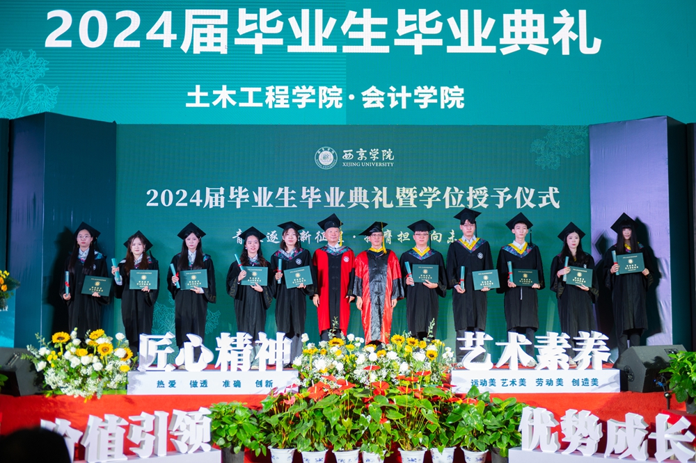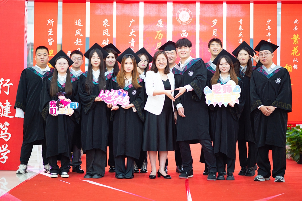 会计学院杜盼盼老师讲述了与学生们一起准备专业证书考试、挑战学术难题、创建“财税说”抖音账号等经历。杜老师表示,这些经历不仅锻炼了学生们的能力,也让他们更深刻地理解了知识的力量。她鼓励毕业生以校训为灯,指引人生路;以友情为伴,共创事业路;以理想为帆,成就西京人。