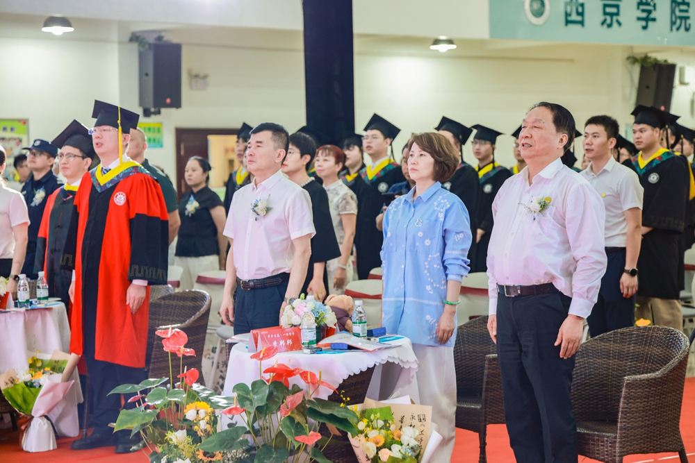 傅少君教授为毕业生颁发学士学位证书和校长寄语,王正斌教授为学士学位获得者扶正流苏。