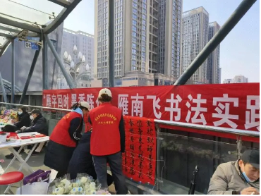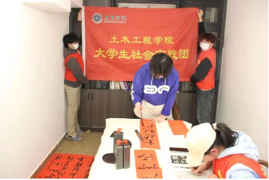 1月7日至1月8日,雁南飞社会实践团在当地开展了撰写春联宣传书法文化的活动。春联是中华民族春节时所需要的必备品,是传播书法文化的重要方式。春联的文字要求工整、对仗,而且要有韵律感,这与书法艺术的审美标准相一致。通过将春与书法艺术相结合,可以更好的展示书法艺术的美,让更多的人领略到书法艺术的魅力。