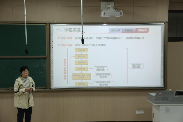 首先,进行说课展示的是董芳菲老师,作为全讯的优秀骨干教师,她主讲《钢结构设计原理》和《钢结构设计》等课程。在本次说课环节,董老师以“钢结构设计课程设计的改革与实践”为主题,分享了她在课程设计中的创新思路与实践成果。董老师详细讲解了如何通过改革课程设计,提高学生的实践能力和综合素质,使理论与实践更好地结合。她的讲解深入浅出,得到了在场教师的一致好评。