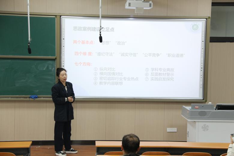 其次,王明玉老师带来了《招投标与合同管理》课程的示范课展示。王老师作为该课程的思政示范课主讲人,不仅在教学上积累了丰富的经验,还注重将思政教育融入专业课程中。在展示过程中,王老师通过生动的案例和深入浅出的讲解,展示了如何在课堂中进行思政教育,引导学生树立正确的价值观和职业道德观。她的经验分享和交流,为在场的青年教师提供了宝贵的借鉴。