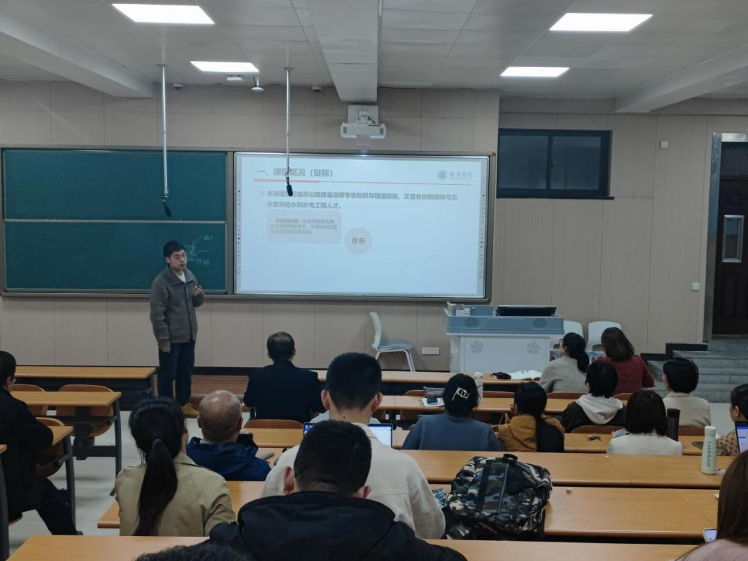 参加此次说课的教师分别是优秀骨干教师冯少飞、工程造价教研室主任董晓蕾以及青年教师刘轩诚。三位教师依次亮相,各展所长。冯少飞老师以深厚的学术功底,结合实例生动讲解了《工程经济学》的核心内容,为教师们提供了宝贵的教学经验。随后,董晓蕾老师通过详细介绍《工程造价软件应用》的教学内容与实践设计,并现场演示软件操作,让教师们直观感受到理论与实践的结合。最后,刘轩诚老师凭借独特的视角和新颖的教学方法,深入浅出地介绍了《水利水电工程概论》,同时分享了教学心得与创新举措,拓宽了教师们的认知视野并激发了教学灵感。