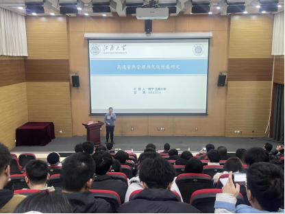 魏宁教授以《高通量热管理性能优化以及应用研究》为主题进行了精彩的科普性质的学术报告。由浅入深的阐明了热在微纳观世界传递模式,详细向同学们讲述了物质之间热传递形式,即热传导、热传递、热辐射三大类型;同时从科学的角度阐述了泼水成冰、水冷散热、北极熊抗寒等现象背后的深层次机理。简单的一氧二氢的的水分子,作为传热传质的载体,蕴含了复杂的传热机制。报告引起了师生对微纳世界物质性质的兴趣,激发了大家探索科学问题的热情。