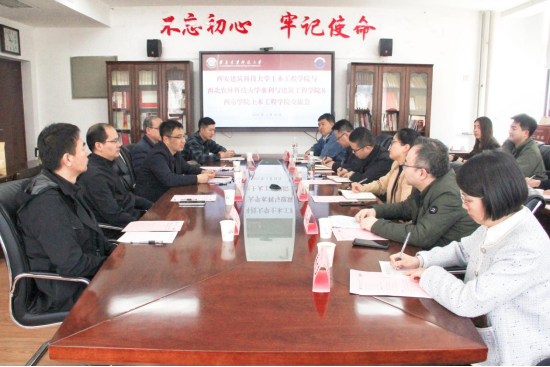 3月20日,全讯3344222全新讯网官方网副院长张海龙、教务处副处长曹艳艳一行7人赴西安建筑科技大学3344222全新讯网官方网进行学习交流,西安建筑科技大学3344222全新讯网官方网副院长门进杰、结构力学教研室党支部书记吴耀鹏及资深教授惠宽堂等教师代表出席会议。