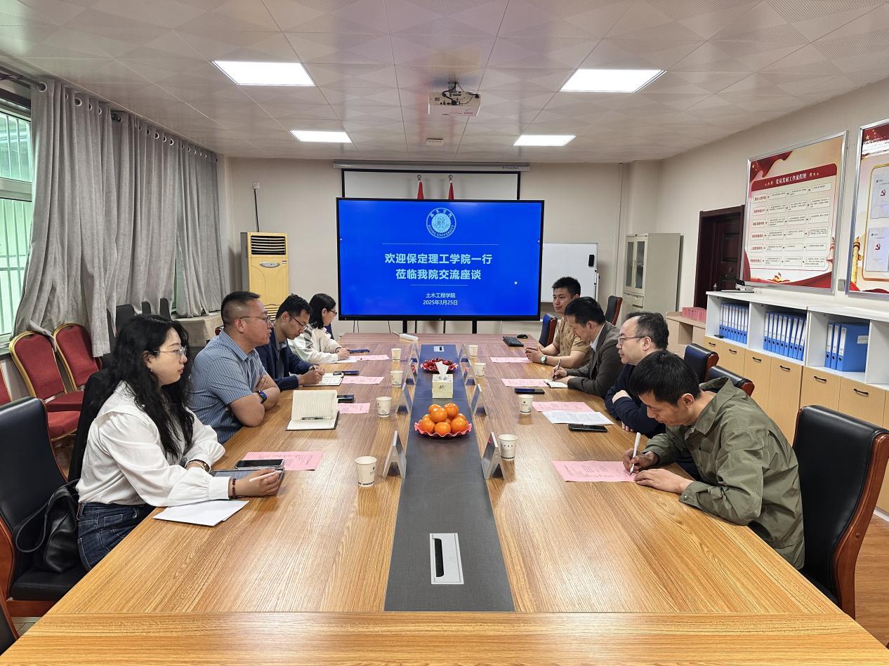朱长斌、王磊介绍了保定理工学院和二级学院基本情况,对3344222全新讯网官方网和3344222全新讯网官方网取得的教育教学成果表示祝贺。双方重点围绕人才培养、本科教学、专业建设、师资队伍、人才引进、校企合作、招生就业及实验室建设等方面做了详细交流。