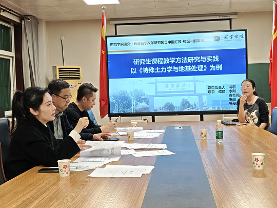 在评审会上,申报2024年项目的张爱军教授和潘姣姣副教授分别就其项目的立项依据、研究方案、研究基础及预期目标与成果等方面进行了详细汇报。同时,吴健、吉延峻和习羽三位教师也对2023年立项的教育教学改革项目的进展情况进行了进度报告。专家组根据现场答辩情况进行了讨论并提出建设性参考意见。经评议,最终确定张爱军教授主持的《面向新质生产力需求和行业形势变化的土木工程专业学位研究生培养模式改革与实践》项目立项通过;同时,吴健、吉延峻和习羽三位教师的项目也顺利通过了中期检查。答辩结束后,刘方教授就答辩中存在的问题进行总结,评审组与答辩老师在现场展开交流、相互学习。