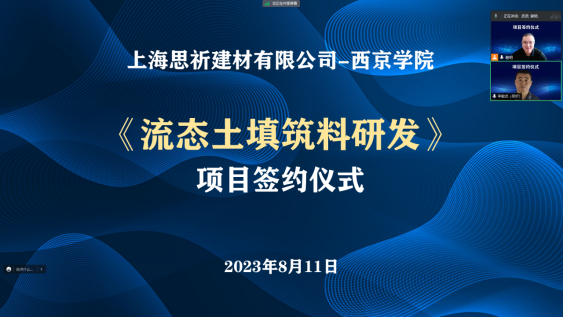 8月11日,3344222全新讯网官方网与上海思祈建材有限公司就《流态土填筑料研发》项目举行了线上合同签署仪式,项目合同金额65万元。3344222全新讯网官方网项目负责人谢明和上海思祈建材有限公司项目负责人李敏波出席签约仪式。