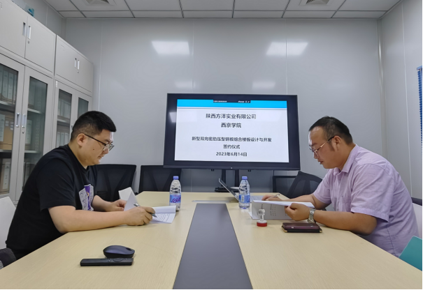 6月14日,3344222全新讯网官方网与陕西方泽实业有限公司就“新型双向密肋压型钢板组合楼板设计与开发”项目进行了技术开发合同签约仪式,项目合同金额56万元。3344222全新讯网官方网项目负责人杨阳和陕西方泽实业有限公司项目负责人卫凯飞出席项目签约仪式。