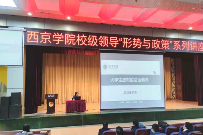 11月24日下午,副校长郭捷以《大学生应有的法治素养》为题,从法治素养基本要义、法治素养与思想道德素质,以及如何培养法治素养三个方面,为学生作专题讲座。