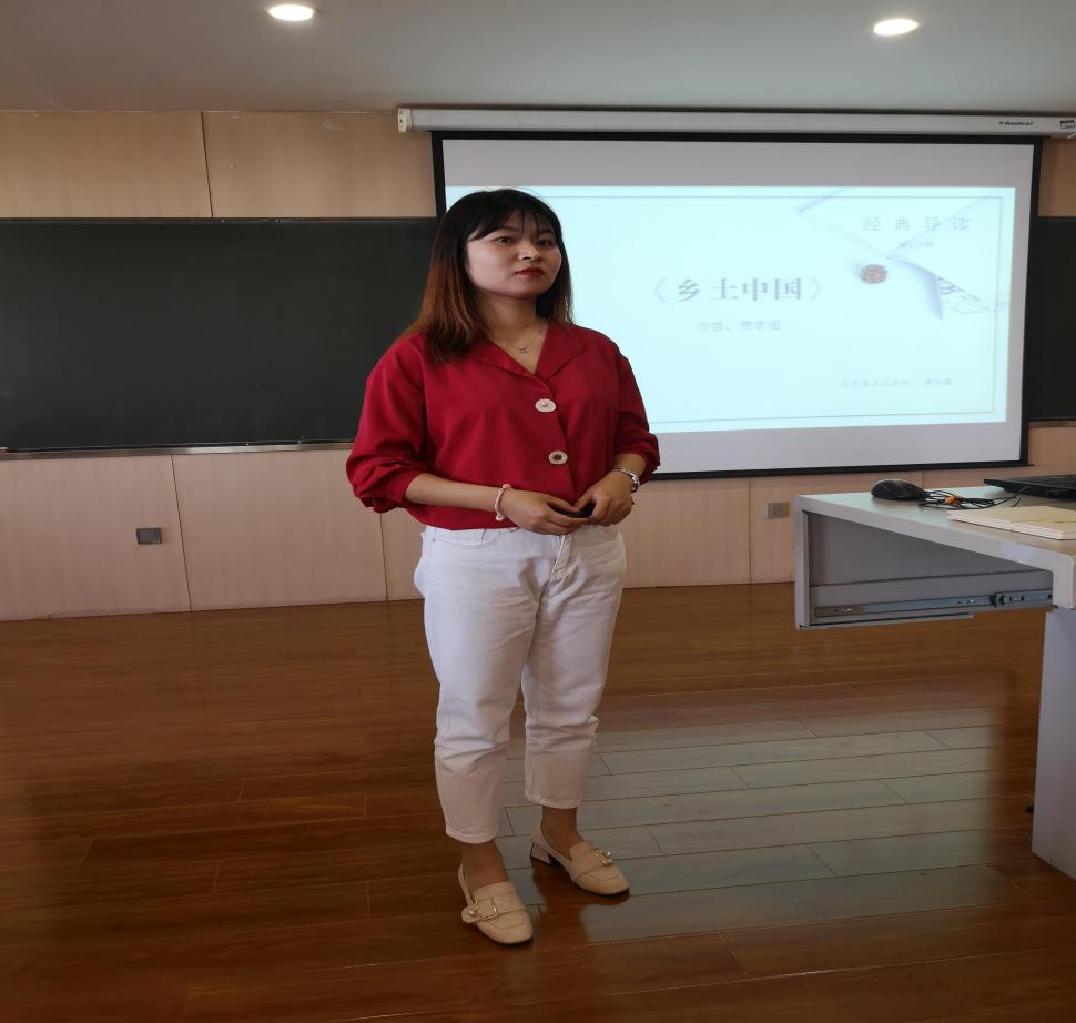 崔杨露老师以费孝通的生平与学术成就为切入点,分别对本书的创作背景、框架结构和主要特征等方面进行了简要介绍。《乡土中国》是讲述中国乡土社会传统文化和社会治理结构的代表作,为研究中国社会文化中的差序格局、乡土社会人文环境、传统社会结构、权力分配、道德体系、法礼、家族、血缘和地缘等方面提供了重要参考。《乡土中国》有两层意思:一则乡土,另一中国。“乡土”指的是社会最基层的广大农村人或乡下人,阐述了乡土社会中人们的价值观与思维的不同;“中国”说明作者对中国社会的现状进行描述,并同时与西洋社会的相关方面进行比较研究。