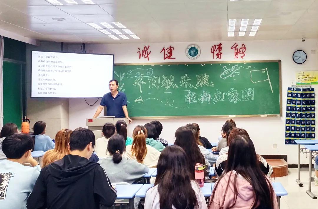 9月26日,全讯各书院开展爱国主义教育班会,了解孟晚舟事件始末,学习孟晚舟回家的故事。
