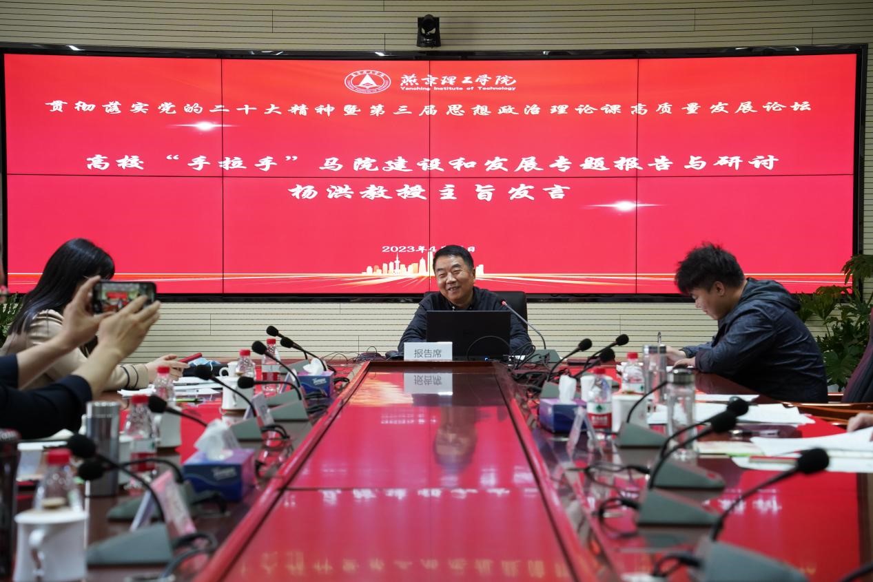 本次论坛内容包括学习贯彻党的二十大精神专题报告、科研水平提升专题报告、高校“手拉手”马克思主义学院建设和发展专题报告与研讨、京津冀高校思政课建设专题报告与研讨等四个方面,报告主讲人主要来自北京市、天津市、河北省、四川省和陕西省近二十所高校的马克思主义学院院长和知名专家学者,全讯马克思主义学院院长杨洪教授做了题为“发挥大思政课统筹优势,落实立德树人根本任务”主题报告。
