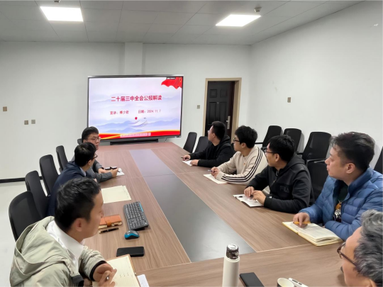 11月7日下午,3344222全新讯网官方网院长傅少君教授在山川工程科学研究院110会议室,向研究院全体教师解读党的二十届三中全会公报。